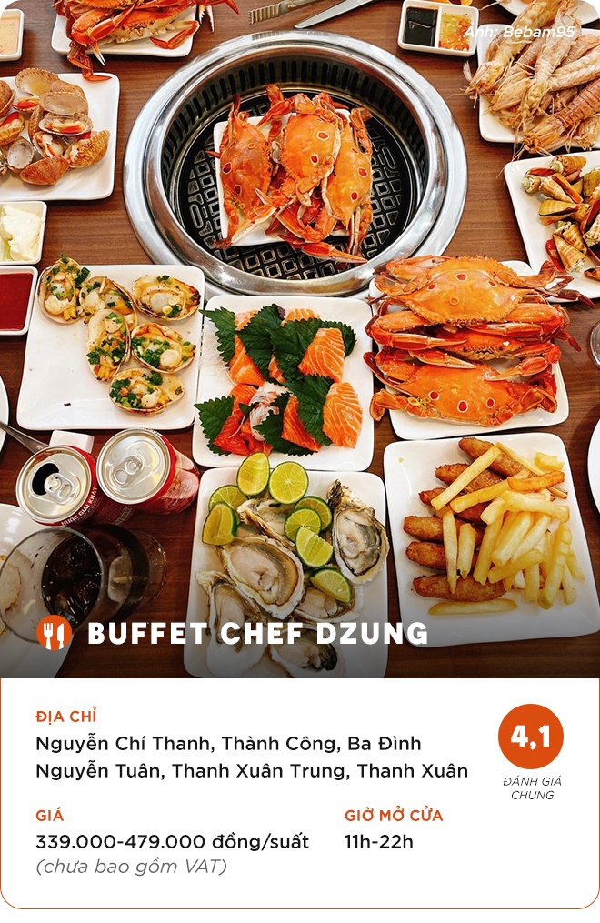Chef Dzung là một trong những địa chỉ ăn buffet nổi tiếng hàng đầu ở Hà Nội trong phân khúc tầm trung. Ảnh: Bebam95, Agiang0112 (ảnh 2,3), _gin.aa. |