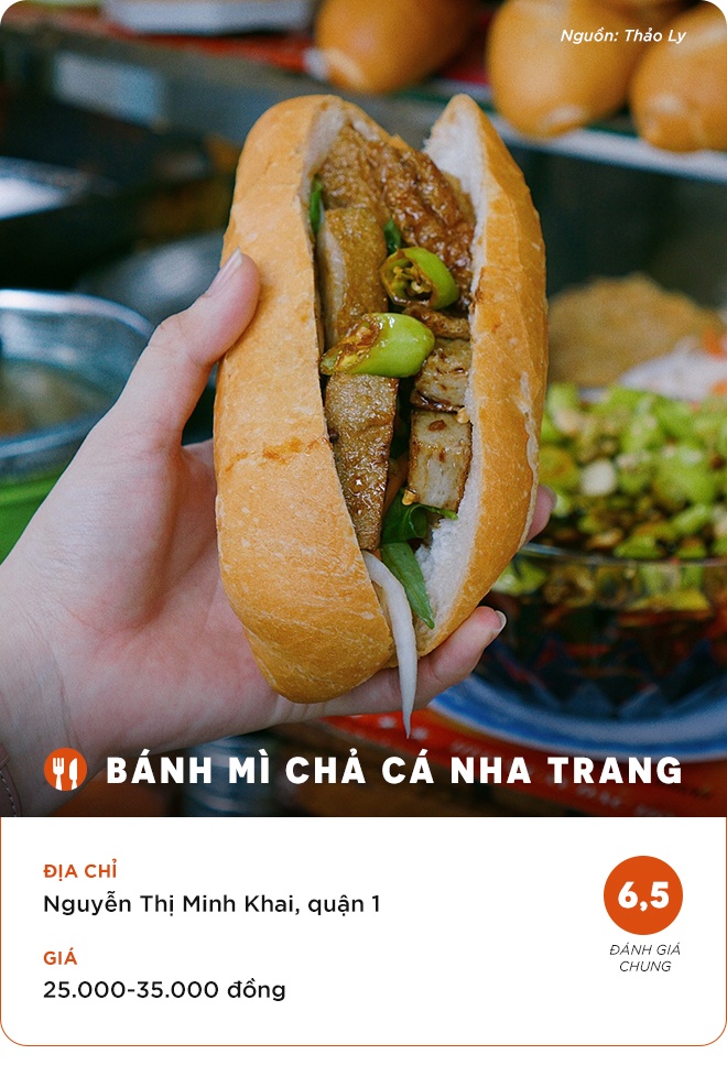 Bánh mì Sài thành với vô vàn biến tấu mới lạ làm thỏa mãn vị giác thực khách. Một trong số đó phải kể đến bánh mì chả cá. Sự hấp dẫn của món ăn nằm ở miếng chả cá chiên thơm lừng kẹp trong bánh mì nóng, chan nước sốt tỏi ớt đậm đà. Ngoài ra, bánh mì ăn kèm với đồ chua, hành ngò, rau răm, tương ớt và ớt tươi dậy vị.