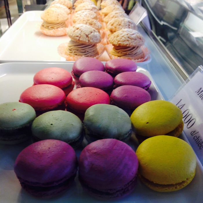 | Đặc biệt, ở đây có dòng bánh macaron - có lẽ là niềm tự hào của chủ tiệm. Bánh macaron với khoảng 7-8 vị với nhiều màu sắc khác nhau như chanh leo, dừa, chocolate, việt quất... |