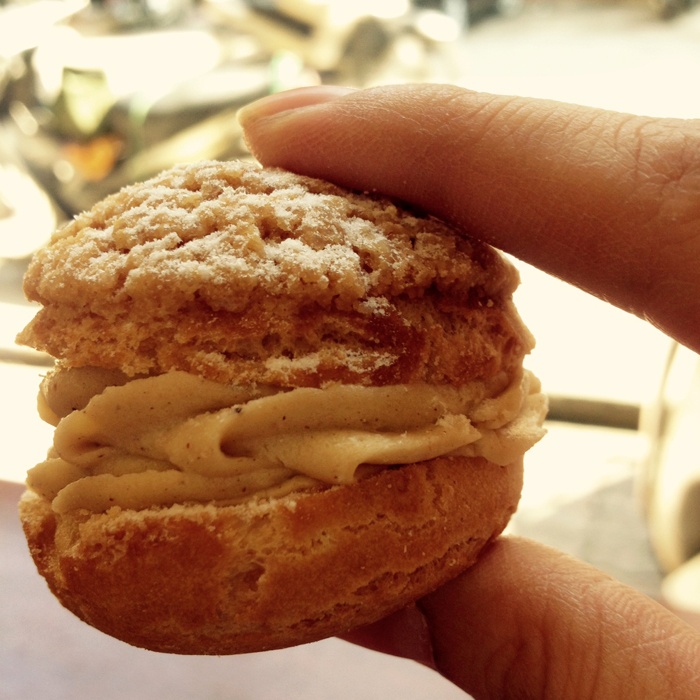 | Chiếc su kem kiểu Pháp này có tên gọi Paris Brest cũng là niềm tự hào của chủ tiệm. |