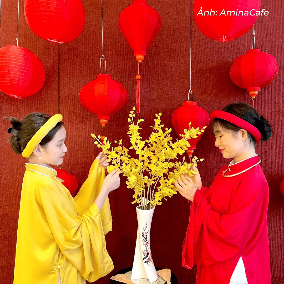 Lướt mạng xã hội, tôi tình cờ biết đến quán với lối bày trí Tết thuần Việt. Tranh thủ ngày rảnh, nhóm tôi hẹn nhau đến trải nghiệm.