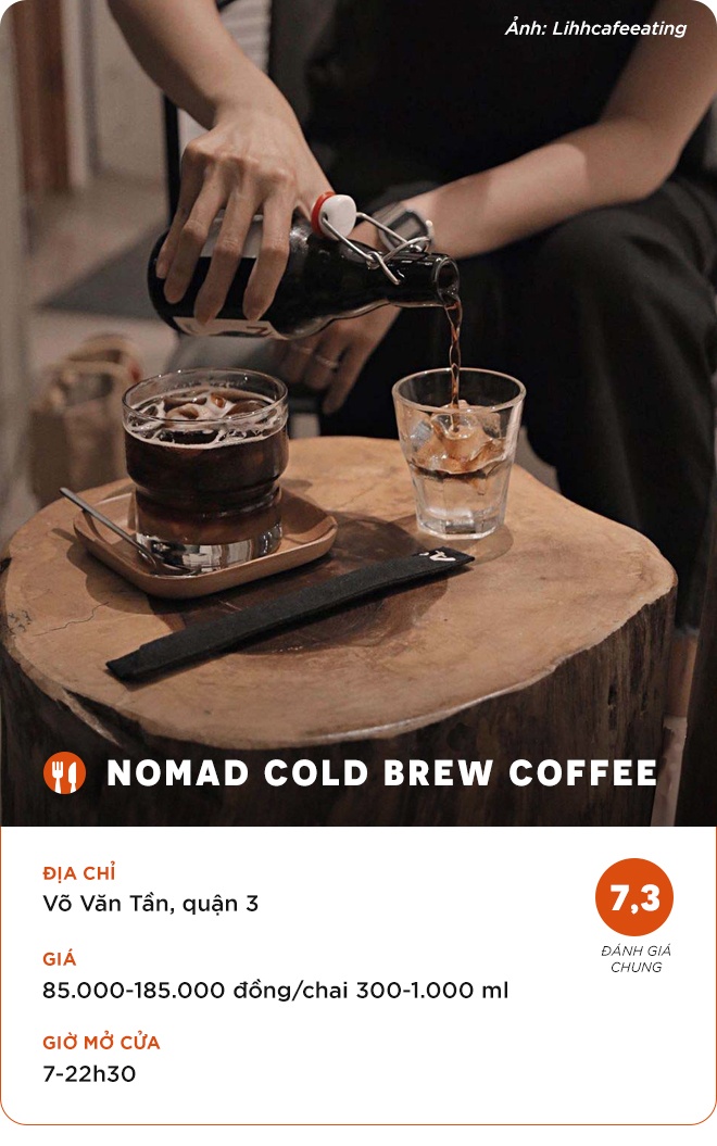 Tại Nomad Cold Brew Coffee, cà phê được ngâm lạnh tươi mới mỗi ngày, đóng chai ngay khi mua, bảo quản được 10 ngày trong tủ lạnh.