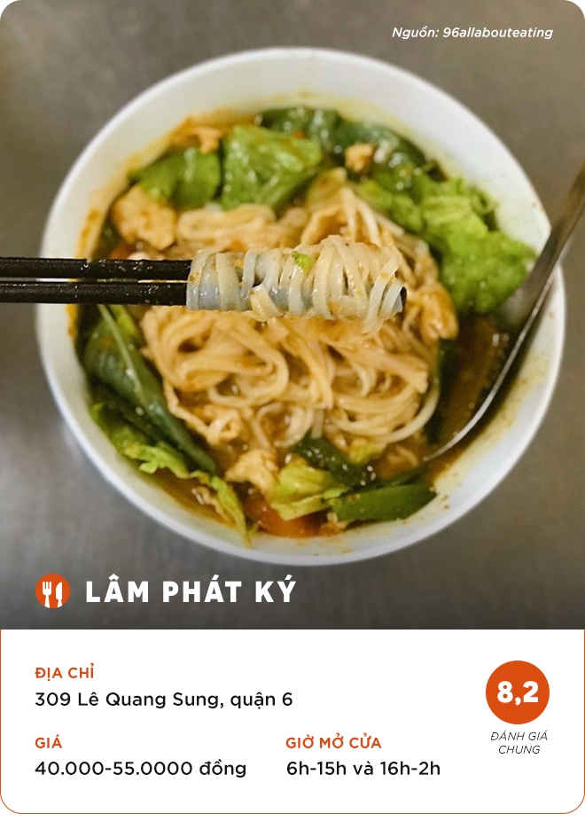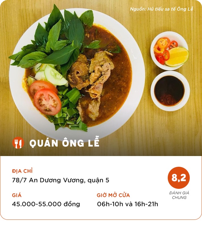 Suốt 60 năm qua, đây là địa chỉ quen thuộc với những thực khách thích ăn hủ tiếu sa tế. Phần nước dùng của quán được chế theo công thức gia truyền với hơn 30 loại gia vị, tạo nên vị ngon riêng biệt.