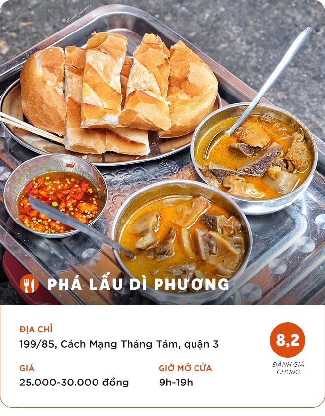Phá lấu là món ăn quen thuộc với nhiều thực khách ở TP.HCM. Sự hấp dẫn của món này là mùi hương thơm phức, miếng bò dai dai chấm trong chén nước mắm me đặc trưng.