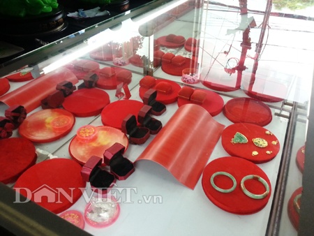 | Đồ trưng bày vàng trong tiệm vàng Thành Chung bị xáo trộn sau vụ trộm. |