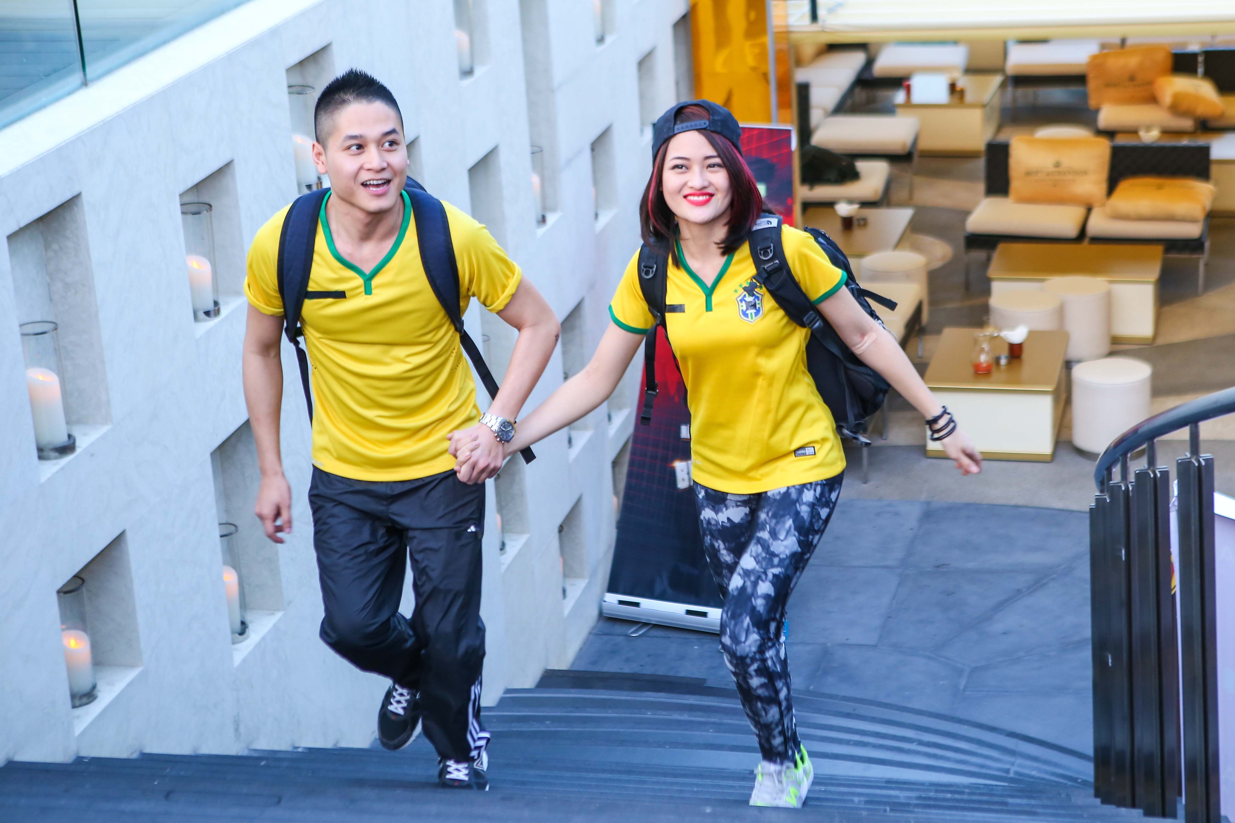 Minh Long từ đội Xám của mùa đua thứ 3 cùng " một nửa” của cặp đôi quán quân mùa 2 là người mẫu Thu Hiền. |