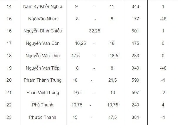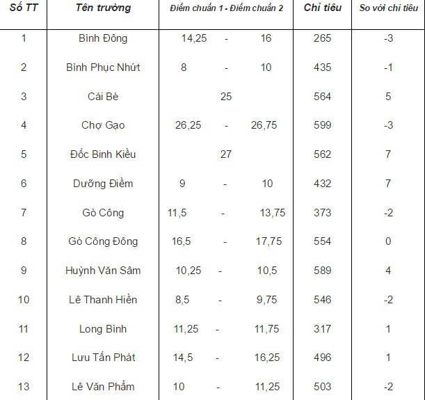 Điểm chuẩn các trường phổ thông cụ thể như sau:
