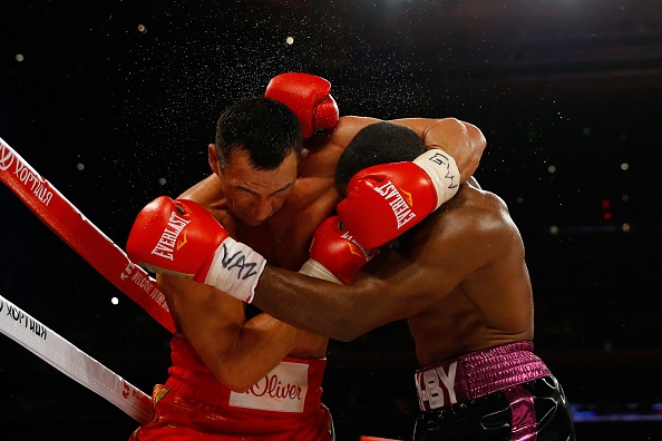 | Suốt 12 hiệp, võ sĩ đến từ Philadelphia cũng tung ra vài cú đấm trúng đích. Một trong số ấy khiến Klitschko dính vết rách nhỏ dưới mắt trái. |