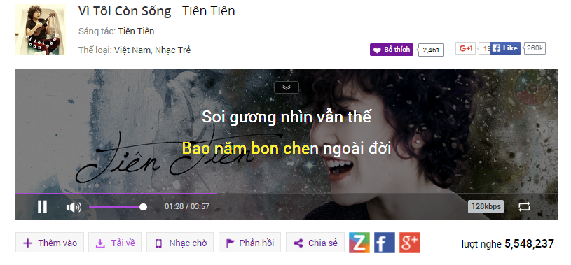 Bảng xếp hạng bài hát tuần mới của Zing Mp3 có nhiều sự thay đổi mới mẻ. Sau cơn bạo bệnh, Tiên Tiên nhận ra những giá trị trong cuộc sống và điều đó giúp cô viết nên ca khúc Vì tôi còn sống. Sáng tác mới của tác giả Giữ em đi nhanh chóng nhận được sự đồng cảm của giới trẻ. Với sự văn minh và khát khao của tuổi trẻ, ca khúc mới của Tiên Tiên luôn được khán giả đón nhận nồng nhiệt.
