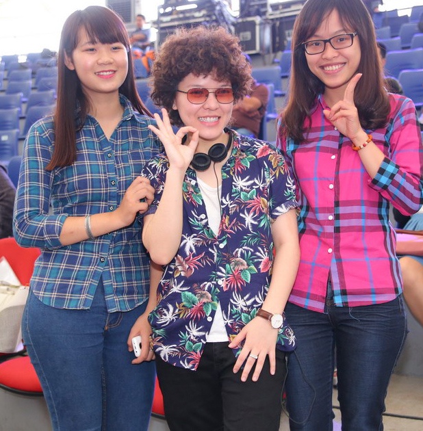 | Tiên Tiên chụp hình cùng khán giả trẻ trong buổi tổng duyệt. |
