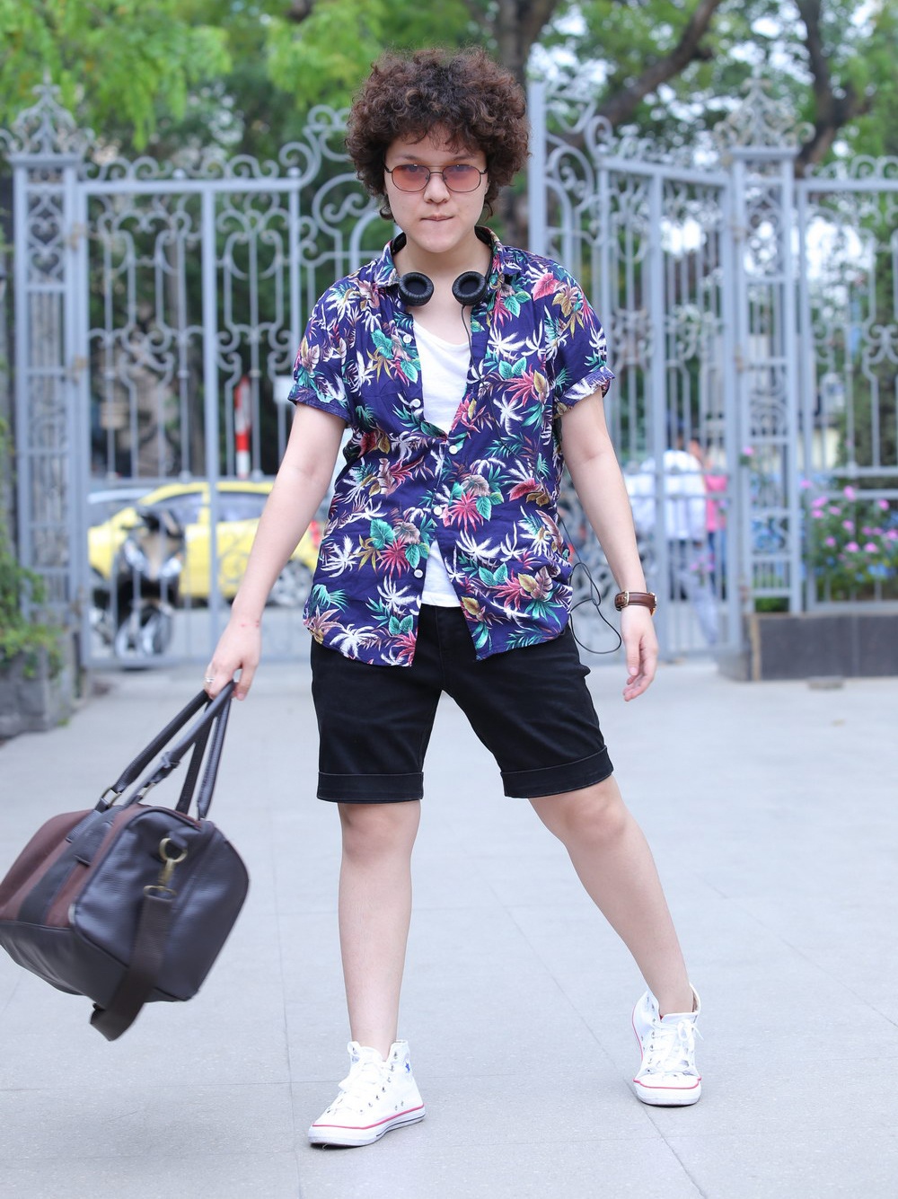 | Chiều 17/4, Tiên Tiên cùng các ca sĩ trẻ 2 miền Nam - Bắc có mặt ở Đài Truyền hình Việt Nam tập luyện cho chương trình Bài hát yêu thích. Cô thu hút chú ý với mái tóc xù, phong cách tomboy trẻ trung, cá tính. |