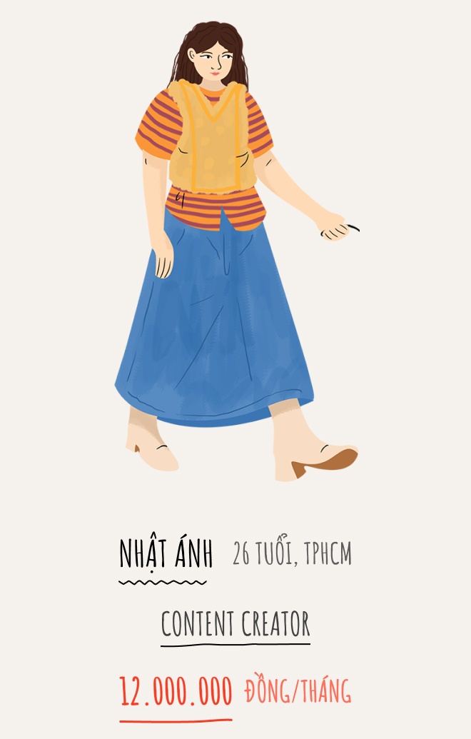 Do đó, tiền lương mỗi tháng của tôi chủ yếu dùng để mua sắm, gặp gỡ bạn bè và đi du lịch. Dù biết đây là lối sống nhiều rủi ro, tôi vẫn cảm thấy thoải mái vì được gia đình hỗ trợ.