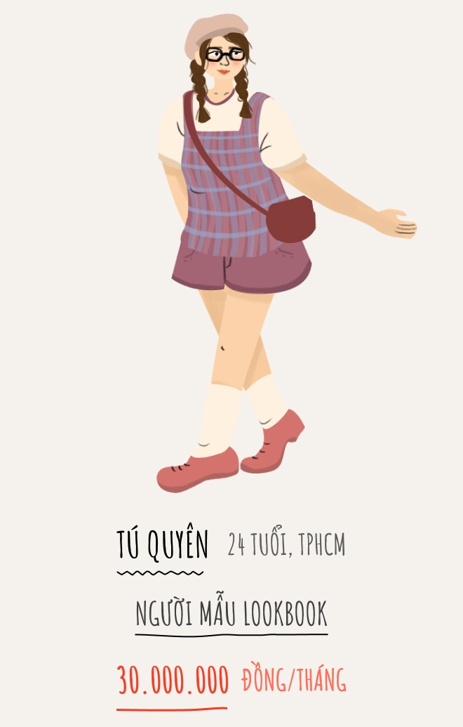 Có ngoại hình ăn ảnh, tôi sớm trở thành người mẫu lookbook cho một số cửa hàng thời trang từ năm 2 đại học. Khoảng thời gian này, mỗi tháng tôi thu về 10-15 triệu đồng. Con số tăng lên gấp đôi trong một năm trở lại đây.