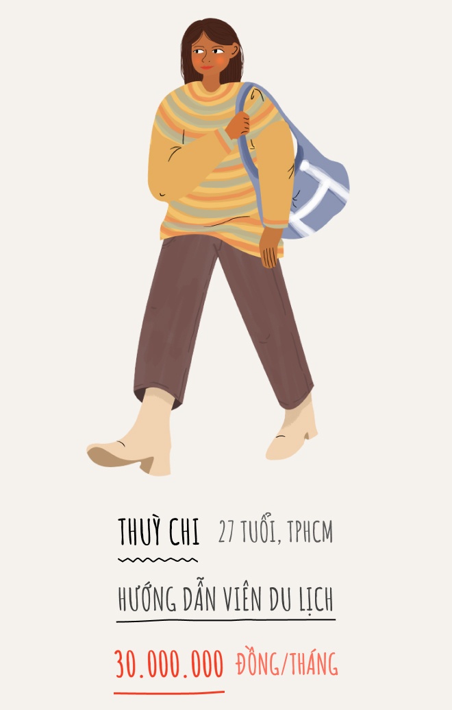 Lương cứng hàng tháng của tôi không cao, tổng thu nhập phụ thuộc vào số ngày đi tour trong tháng và tiền tips từ khách. Trung bình, vào tháng cao điểm tôi có khoảng 30 triệu đồng.