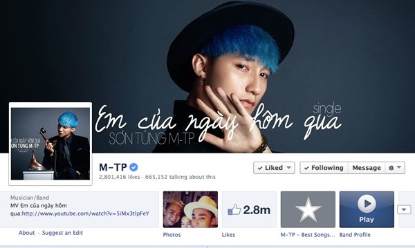 | Không thua kém độ hot của bất kỳ sao Việt nào, fanpage cá nhân của Sơn Tùng M-TP có đến hơn 2,8 triệu lượt theo dõi. |