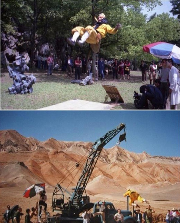 Tất cả những cảnh kỹ xảo, bay nhảy trong Tây du ký 1986 đều được thực hiện thủ công, tự chế sau khi nữ đạo diễn Dương Khiết sang Hong Kong học hỏi kinh nghiệm. |