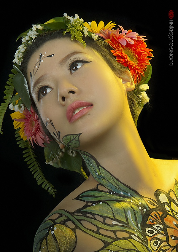 - Nhìn chung thì 1 bộ ảnh nghệ thuật như vậy thường mất khoảng nửa ngày để hoàn thành. Đầu tiên là make up, rồi tới công đoạn cực nhất là vẽ cơ thể rất lâu và mỏi trong vòng từ 5 đến 6 giờ. Sau đó là làm tóc và cuối cùng đến bộ phận hậu trường sẽ set-up đèn, canh sáng, người mẫu tạo dáng và chụp.