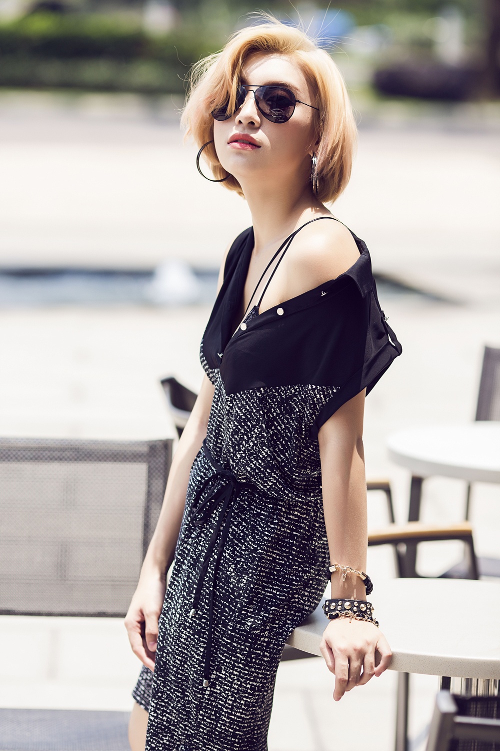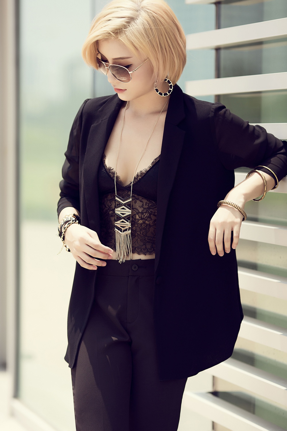 | Bộ ảnh thời trang đường phố vừa thực hiện cho thấy gu thời trang có sự thay đổi ở nữ ca sĩ. Trong loạt xu hướng hè, cô ưu ái mốt nội y gợi cảm. Người đẹp 9X mix - match tinh tế giữa các items quần âu, giày cao gót ton sur ton cùng tổng thể. |