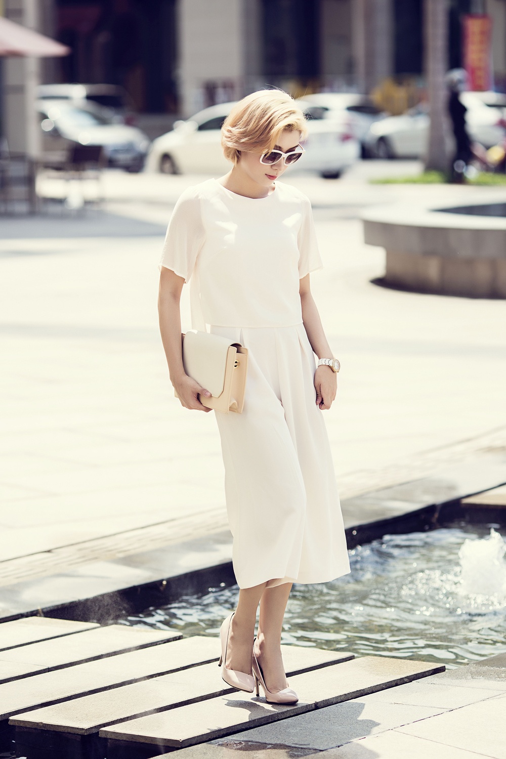 | Set trang phục màu trắng luôn mang lại nét trang nhã, thanh lịch khi dạo phố ngày hè. Bộ ảnh được thực hiện bởi stylist: Quang Kao, nhiếp ảnh: Tùng Chu. |