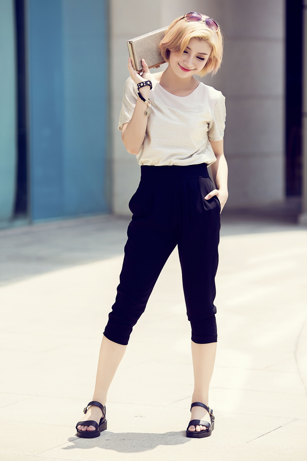 | Người đẹp thay đổi phong cách với mốt quần lửng, giày sandals và áo thun tiện lợi. |