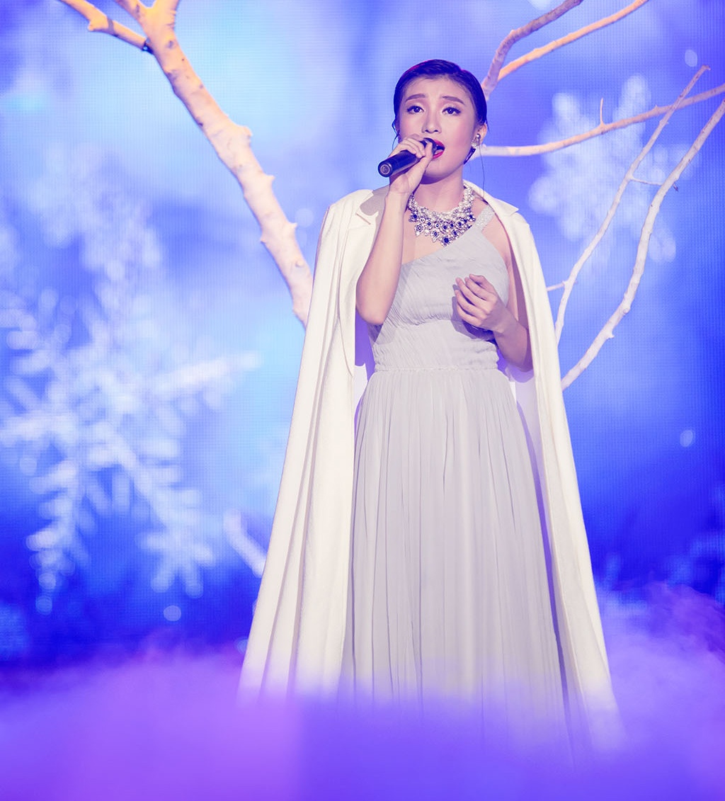 | Trong liveshow, không khó để nhận ra sự căng thẳng của Tiêu Châu Như Quỳnh khi đứng trước một sân khấu hoành tráng, được bao bọc bởi hàng ngàn khán giả cuồng nhiệt. Sự bỡ ngỡ của nữ ca sĩ có thể thấy rõ ở tiết mục đầu tiên. |