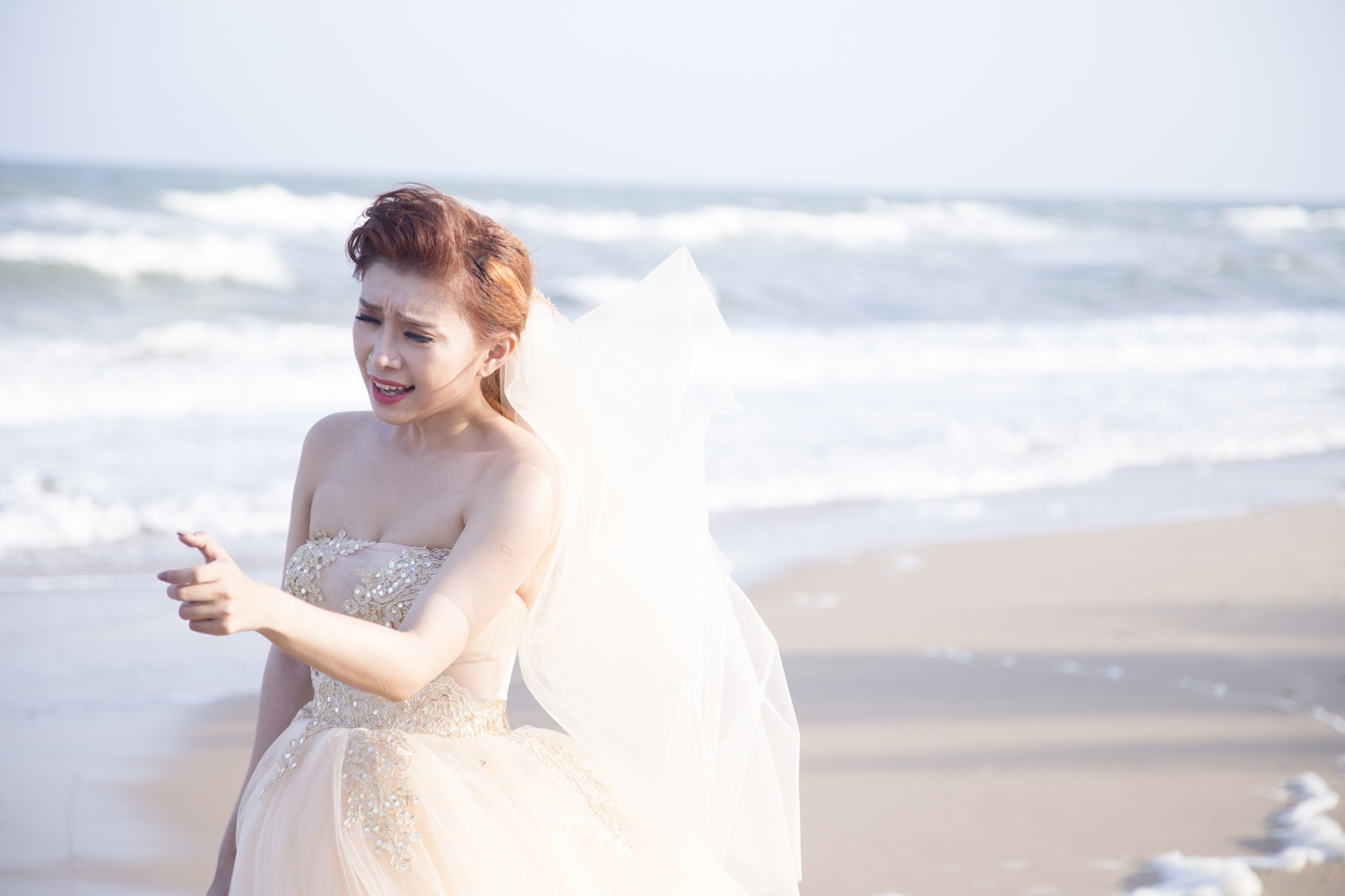 | Nhân vật cô dâu trong MV thể hiện sự trưởng thành về diễn xuất của cháu gái Lam Trường khi thể hiện sự giằng xé, đau khổ với gương mặt thất thần vì mất mát khi yêu. |