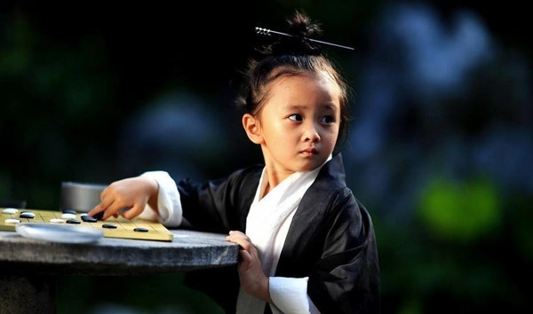 | Trong bộ ảnh này, tiểu đạo cô vô cùng đáng yêu, cùng sư phụ chơi cờ, đánh đàn, luyện võ. |