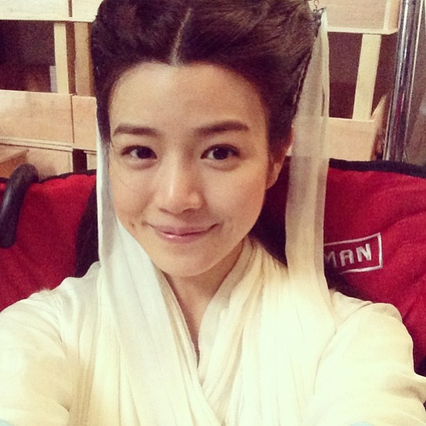 | "Tự sướng" trên phim trường Tân thần điêu đại hiệp. Đây là bộ phim khiến Trần Nghiên Hy điêu đứng trước cơn bão "ném đá" của cư dân mạng. Phần đông mọi người cho rằng cô không đủ nhan sắc để đảm nhận vai Tiểu Long Nữ xinh đẹp. |