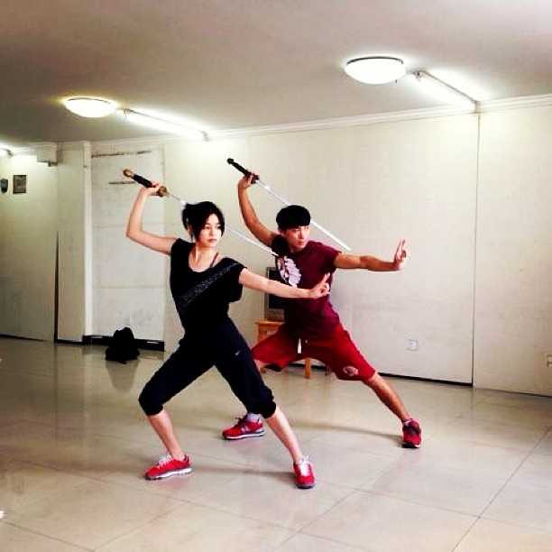 | Tập luyện cho vai Tiểu Long Nữ. |