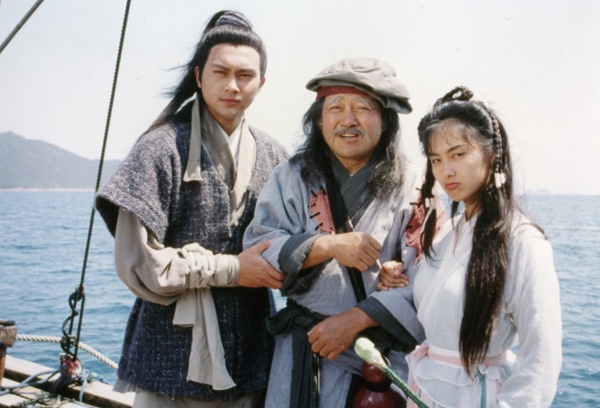 | Trương Trí Lâm (vai Quách Tĩnh), Chu Ân (vai Hoàng Dung) và Lưu Đan (vai Hồng Thất Công) Cảnh trong phim Anh hùng xạ điêu. |