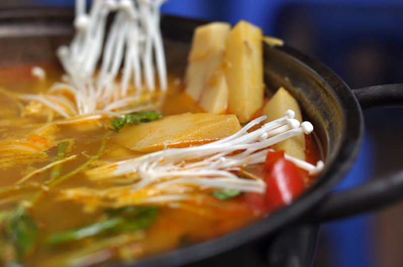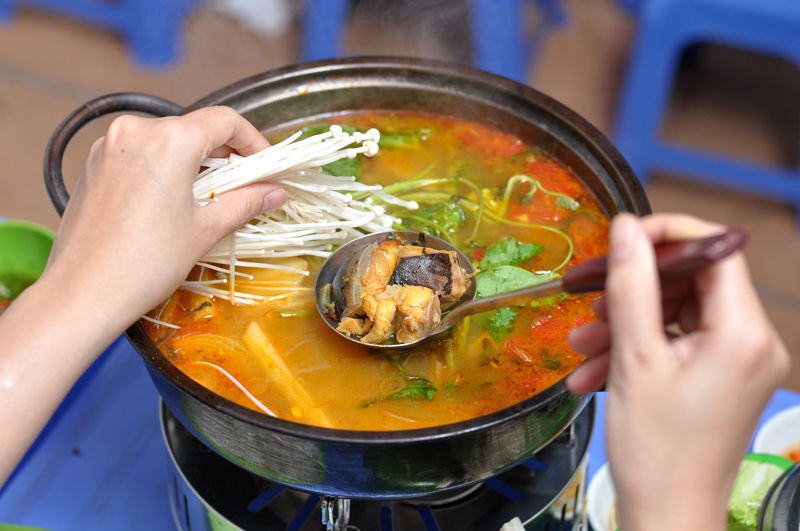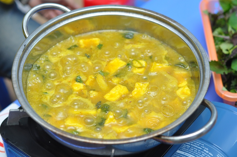 Om chuối đậu có lẽ cho khách cảm giác “hời” nhất. Ngoài cá đuối còn có nhiều đậu rán dai dai, chuối xanh mềm bở, chan nước canh nóng hổi dậy mùi quả là tuyệt vời cho ngày trở gió thế này. Nhưng đến mùa lạnh, cá đuối măng cay hay lẩu Thái cá đuối sẽ khiến bạn xuýt xoa, thích thú hơn với vị chua cay ngon tuyệt. Ưu điểm của các món lẩu này là cá đuối đầy đặn mà giá vừa phải – 220.000 đồng/nồi đủ cho khoảng 3 người ăn thoải mái.