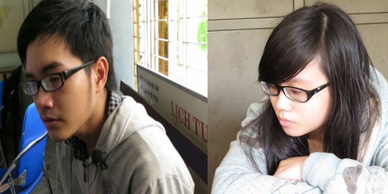 | Duy và Linh tại cơ quan công an. |