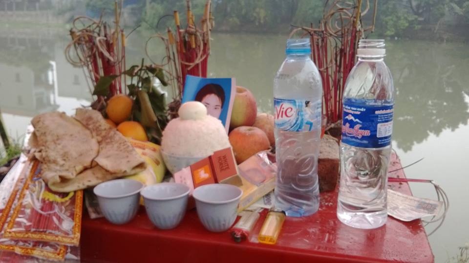 | Nơi phát hiện thi thể ngay gần chỗ lập ban thờ nạn nhân. |