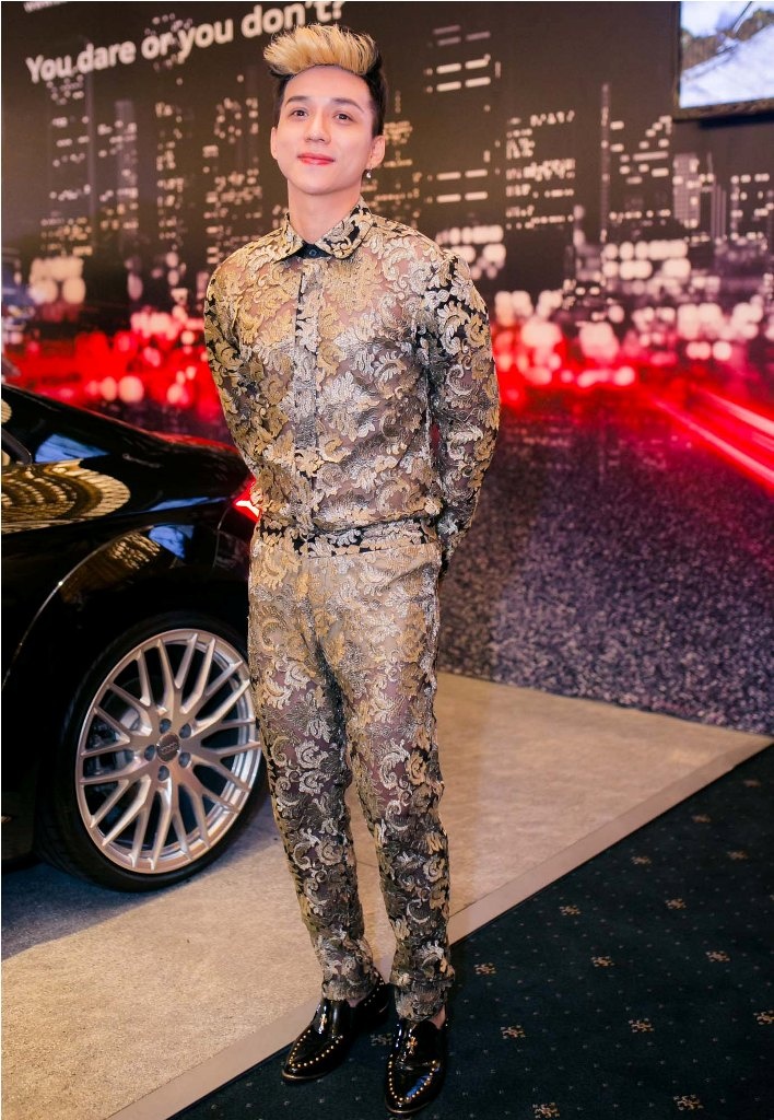 | Hot boy Cường Dimo diện nguyên một cây suit hoạ tiết hoa cắt 3D tinh tế, đem đến một màu sắc hoàn toàn mới cho phong cách của mình. |