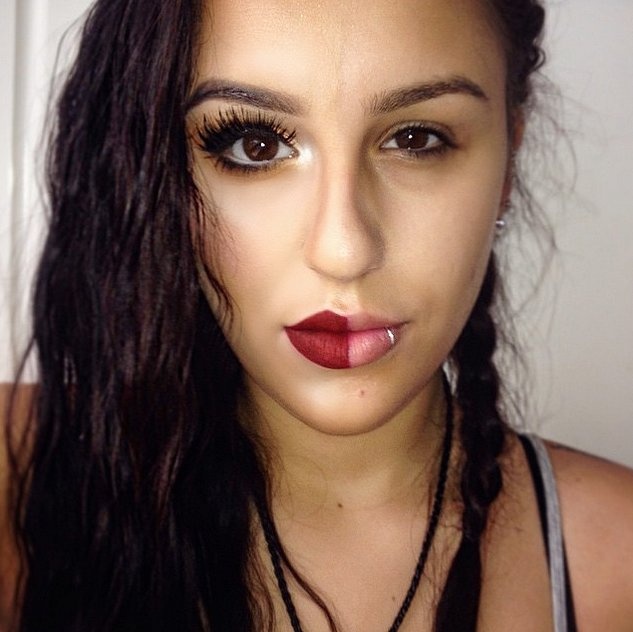 | Chủ tài khoản anoushkabeauty khoe nửa gương mặt trẻ trung hơn nhờ son phấn. |