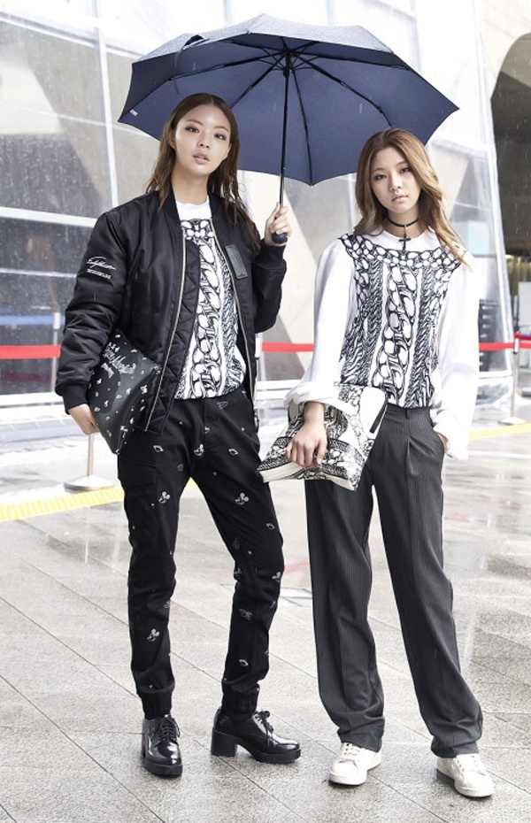 | Một bạn gái chọn cho mình chiếc ô hồng thiết kế độc đáo cực bắt mắt trên đường phố Seoul trong khuôn khổ Tuần lễ thời trang 2015. |
