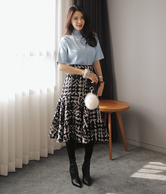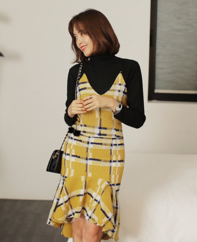 | Bạn có thể sử dụng kiểu váy này đi dự tiệc với chất liệu dạ kẻ thanh lịch, sang trọng. |