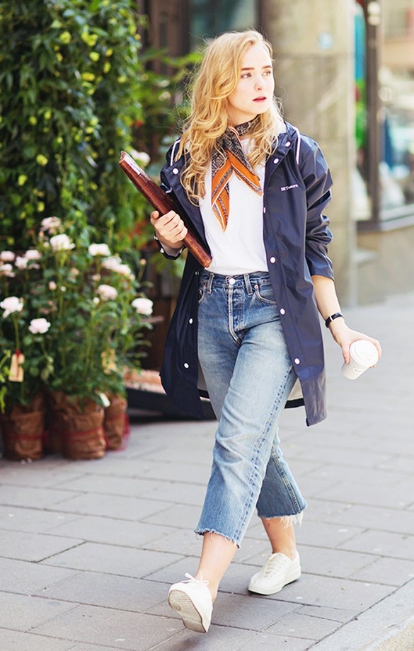 Giày sneakers và quần jeans lửng, áo jacket giúp bạn luôn trẻ trung, năng động.