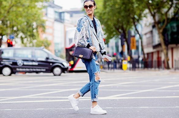 Hay cả cây denim sẽ thêm trẻ trung với kiểu sneakers trắng.