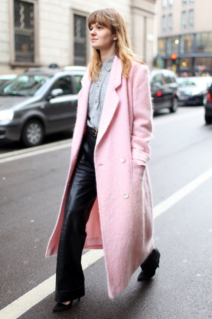 | Các mẫu áo khoác dáng oversize dường như lột xác với nét nữ tính của tông hồng pastel. |