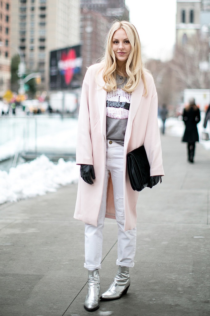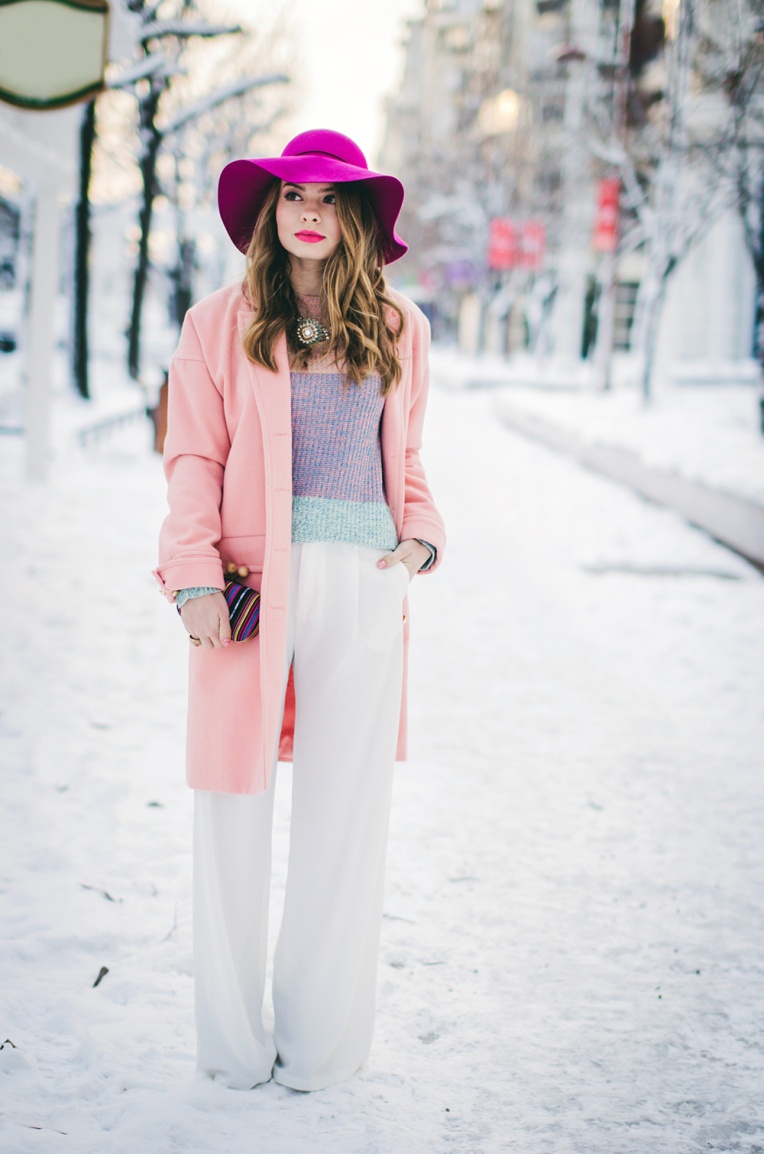 | Màu hồng đã thay đổi hẳn quan niệm về không khí ảm đạm của ngày đông, và bạn có thể học cách mix màu tươi tắn của Miranda Kerr để tăng vẻ trẻ trung. |