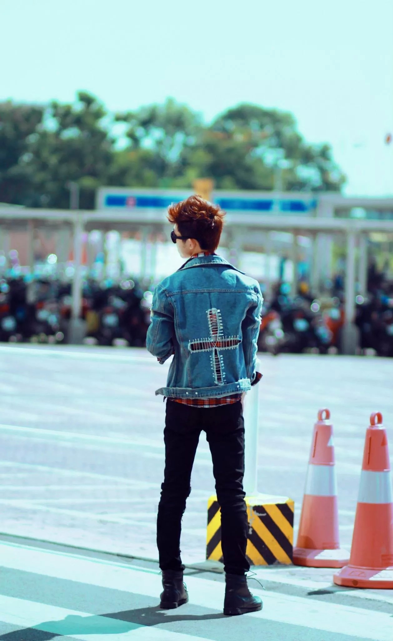 | Áo sơmi và khoác jeans handmade giúp anh chàng này thu hút mọi ánh nhìn khi xuống phố. |