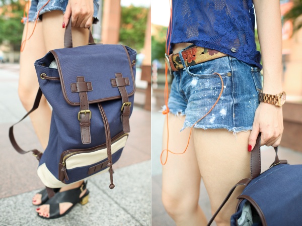 | Chân dài ăn vận phá cách, nổi bật ở một góc phố. |
