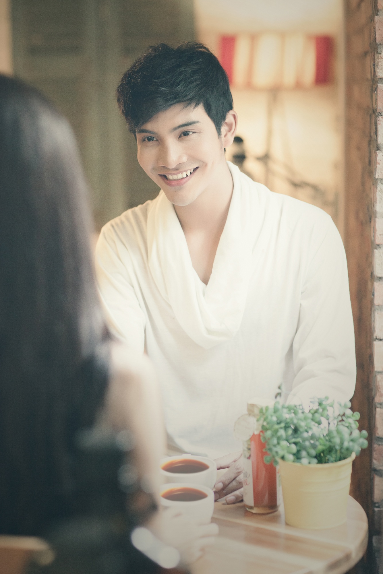| Với tiết trời mát mẻ thì những chiếc áo sơ mi màu trắng đơn giản cách điệu phần cổ thun nhún vừa đủ để tạo chút “bụi” và cũng đầy thánh thiện, cho chàng thêm cuốn hút. |