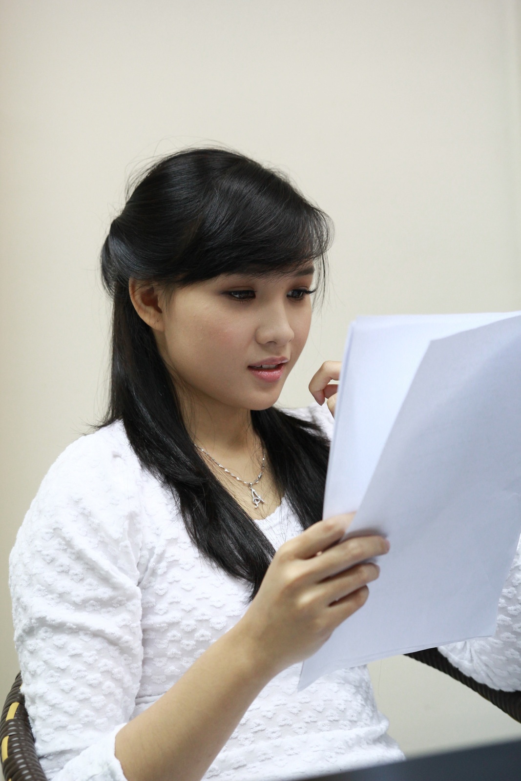 Ngược lại, á hậu Hoàng Oanh lại có phần căng thẳng trong quá trình thử vai. |