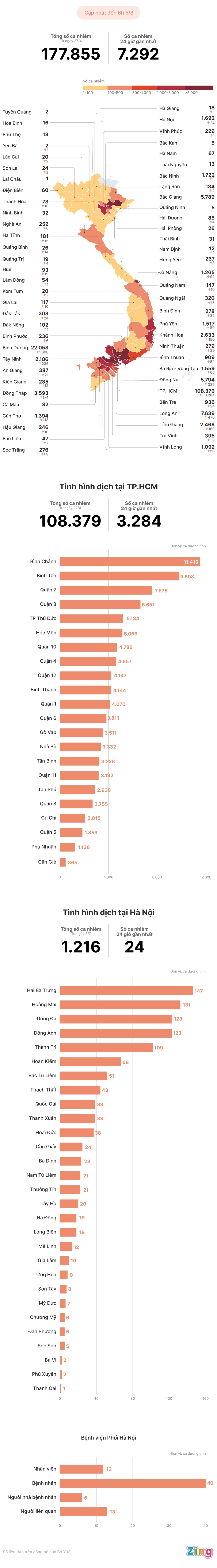 Tính từ 27/4 đến nay, Việt Nam có 177.855 ca mắc Covid-19. Đặc biệt, Hà Nội đã phát hiện 1.216 bệnh nhân sau một tháng bùng phát trở lại.