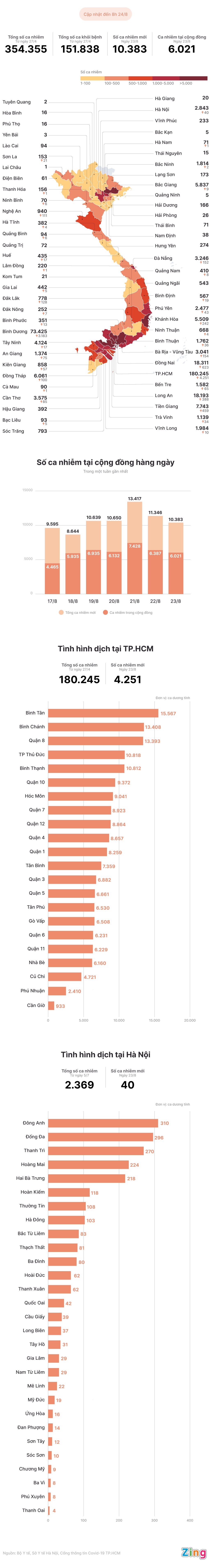 Từ khi dịch Covid-19 bùng phát trở lại vào ngày 5/7 đến nay, Hà Nội đã ghi nhận 2.369 người nhiễm nCoV. TP.HCM vẫn là địa phương có số lượng ca mắc cao nhất cả nước.