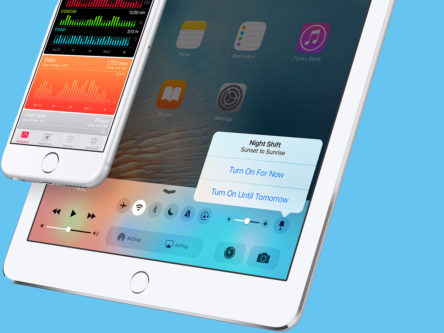 Trên iOS 9.3, Apple sẽ mang đến tính năng có tên “Night Shift” với khả năng thay đổi màu của màn hình tuỳ vào thời điểm của ngày.