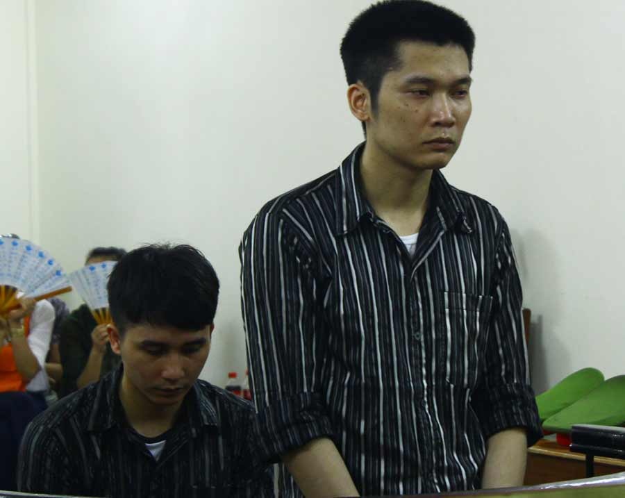 | Bị cáo Quyết (đứng) và Đạt cùng bị truy tố tội Vận chuyển trái phép chất ma túy. Ảnh: MĐ. |