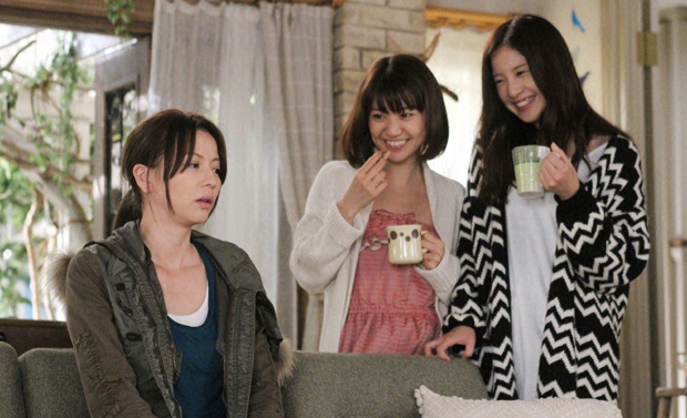 | Mako (bìa trái) thuê nhà sống chung với hai cô bạn Saki (bìa phải) và Fujii (giữa). |